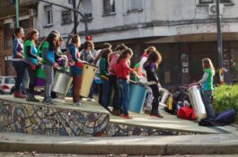 It carried out neighborhood interventions such as planting trees in memory of the disappeared detainees from the neighborhood during the last civic-military dictatorship in each of the five squares, placing bronze plaques at the base of the trees. He also intervened with mosaics on the central fountain, an activity in which people of all ages participated, and had numerous musical activations as it lasted for several months.